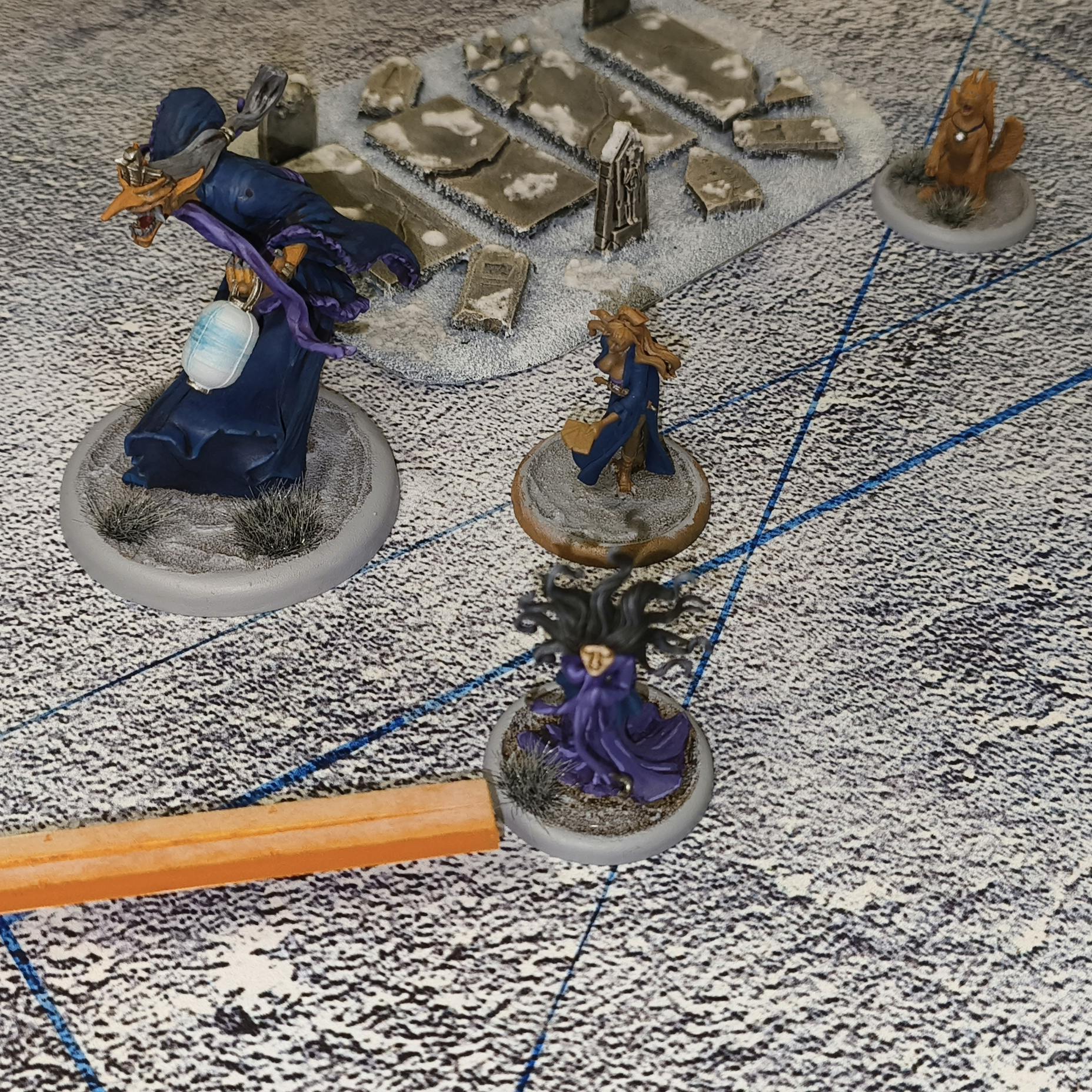 I did manage to score Sweating Bullets with the Shieldbearer, but it was made harder by the Corpse Candle's Death Urge which was meant to push Kitty through models towards the Shieldbearer completely whiffed.