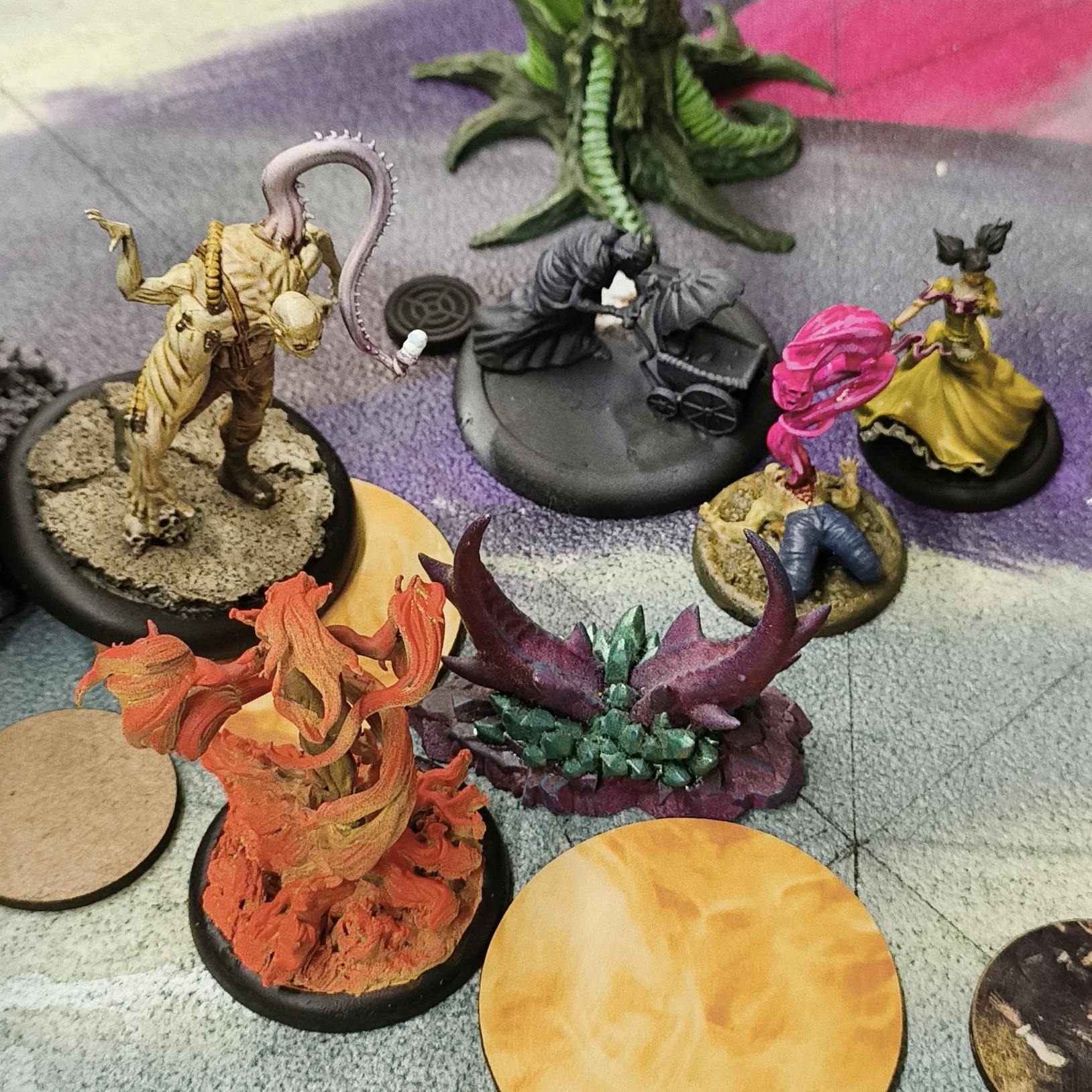 A fun part of this game was the little 'Void Party' we had at the side for buried models. I insisted on dropping my poor Cavern Nephilim's corpse in the void, as well as the Enslaved Spirit's Scheme marker that it drops from it's Demise (Claims of the Court) ability. I didn't claim these markers did anything. Many of my models were at the Void Party, but most of them left or died or both.
